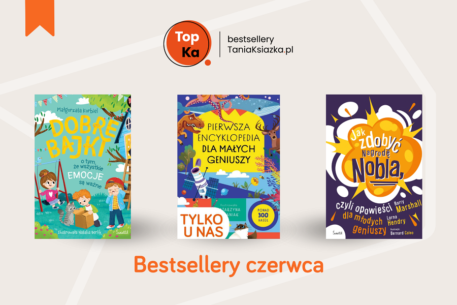Na szczycie czerwcowego podium znalazła się książka "Dobre bajki o tym, że wszystkie emocje są ważne" Małgorzaty Korbiel. To zbiór opowieści, które uczą dzieci, jak radzić sobie z emocjami towarzyszącymi im na co dzień, pokazując, że każda emocja jest ważna i jak sobie z nimi radzić. Drugie miejsce zajęła "Pierwsza encyklopedia dla małych geniuszy” (praca zbiorowa). Ta bogato ilustrowana encyklopedia w przystępnej formie przybliża młodym czytelnikom zagadnienia z przyrody, geografii, biologii, techniki czy kosmosu. Na trzecim miejscu uplasował się tytuł "Jak zdobyć Nagrodę Nobla, czyli opowieści dla młodych geniuszy" Lorny Hendry. To pełna przygód podróż w czasie, która inspiruje do spełniania marzeń i pokazuje, jak ważne są odkrycia naukowe.