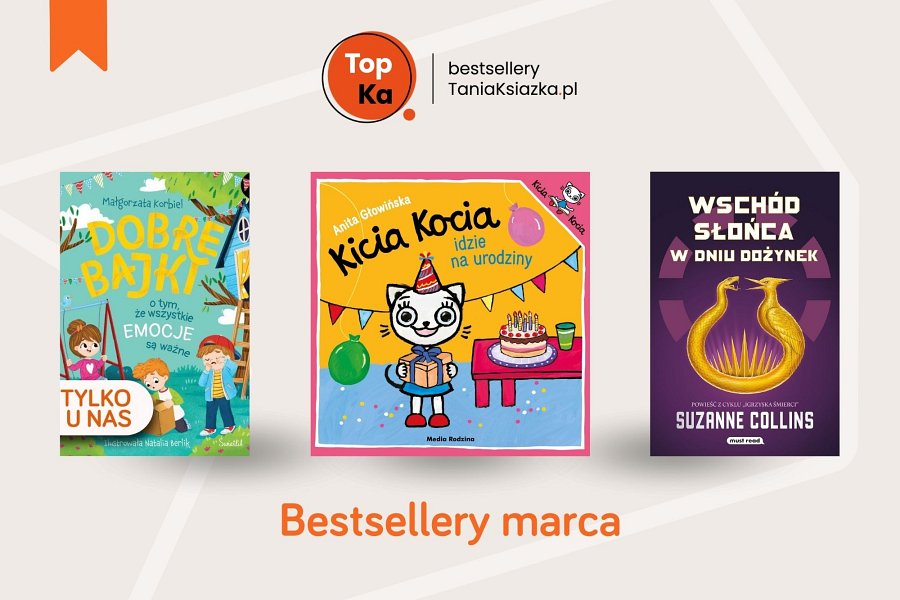 Na szczycie marcowego podium ponownie uplasowała się Małgorzata Korbiel z książką „Dobre bajki o tym, że wszystkie emocje są ważne”. Ta ciepła i wartościowa pozycja pomaga dzieciom rozpoznawać emocje i lepiej rozumieć siebie. To idealna lektura do wspólnego czytania i rozmowy z najmłodszymi. Drugie miejsce zajęła ulubienica przedszkolaków – „Kicia Kocia idzie na urodziny” autorstwa Anity Głowińskiej. Nowa przygoda Kici Koci to porcja radości i dziecięcej codzienności, którą pokochali rodzice i mali czytelnicy. Na trzecim miejscu znalazła się długo wyczekiwana kontynuacja kultowej serii – „Wschód słońca w dniu dożynek” Suzanne Collins. To prequel „Igrzysk śmierci”, który zabiera czytelników w głąb mrocznego Panem i opowiada o losach Haymitcha, jednego z najbardziej intrygujących bohaterów cyklu.
